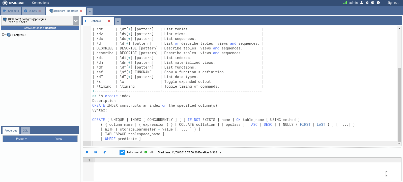 Introduced in OmniDB 2.6.0, the new OmniDB Console Tab provides an easy and